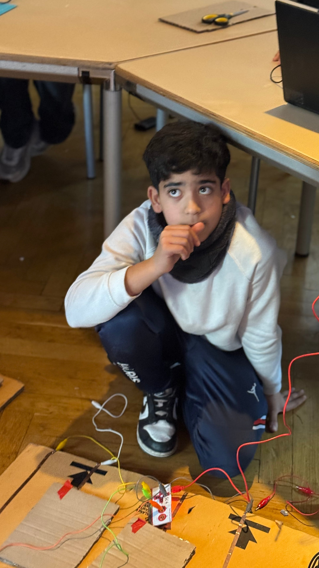 Der Händel Junior Sequencer MINT-Workshop verbindet musikalische Kreativität mit Grundlagen der Programmierung und Elektronik. Schüler der 5. Klasse arbeiten mit Scratch und Makey-Makey-Controllern an Laptops. Sie verdrahten Pappflächen, Alltags- und/oder Musseums-Objekte und einfache elektrische Schaltungen, die als spielbare Tasten dienen. Durch Berühren, Springen oder das Schließen von Stromkreisen lösen die Kinder vorbereitete Rhythmus- und Sound-Samples und eigene Sprachaufnahmen aus und ergänzen dies mit den bereit gestellten Percussion-Instrumenten.