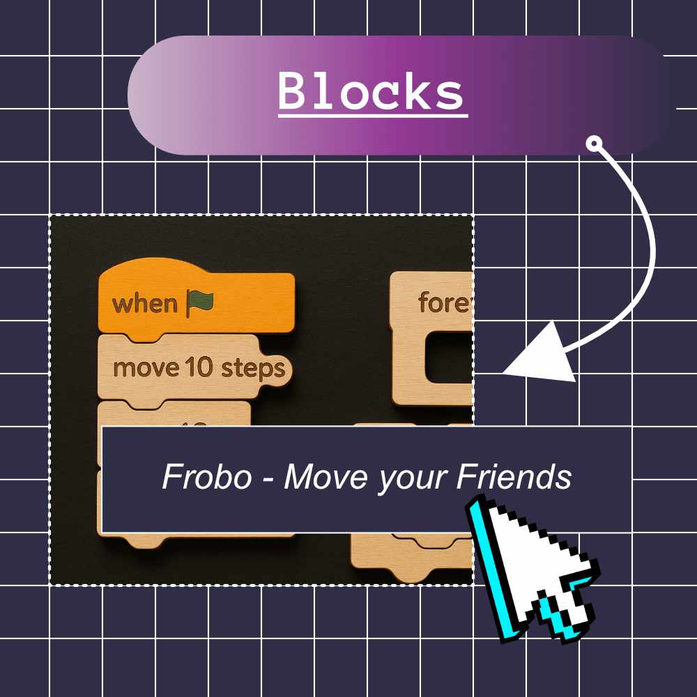 Frobo code Bewege deine Freunde mit Code Werde zum Programmier-Boss! Mit „Programmier-Puzzle-Blöcken“ steuern wir unsere Freunde wie Roboter! Wir benutzen bunte Blöcke, um ihnen lustige Befehle zu geben: „Geh vor!“,...